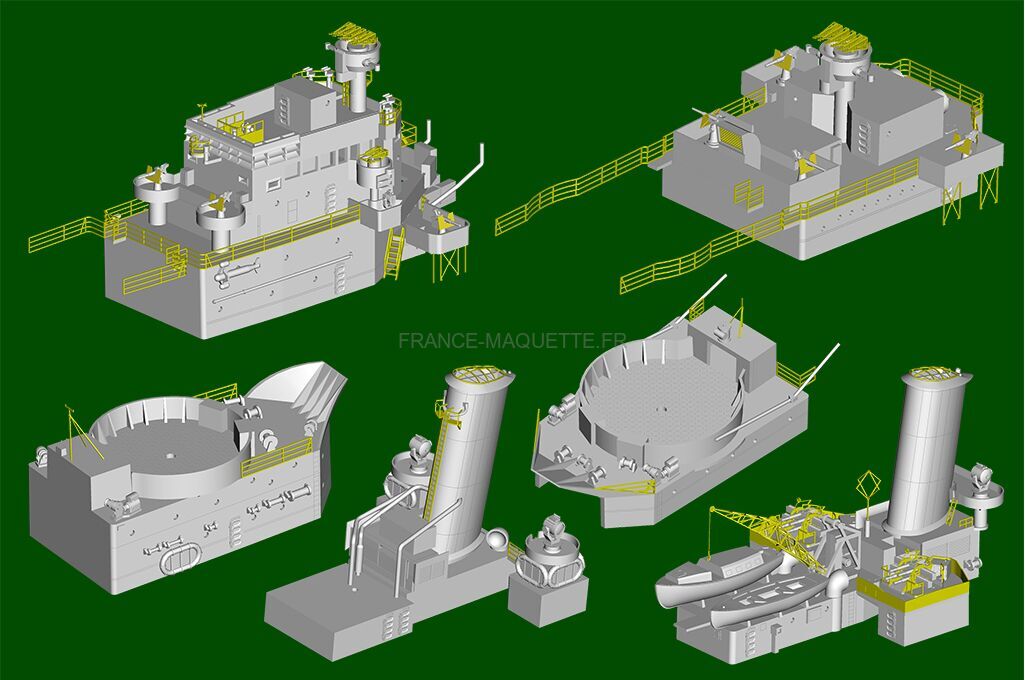Le travail de peinture sera essentiel pour mettre en valeur les différentes zones du navire, du pont aux superstructures. Grâce à la qualité de moulage et aux détails soignés, le résultat final offre une représentation fidèle et impressionnante de ce croiseur emblématique.
