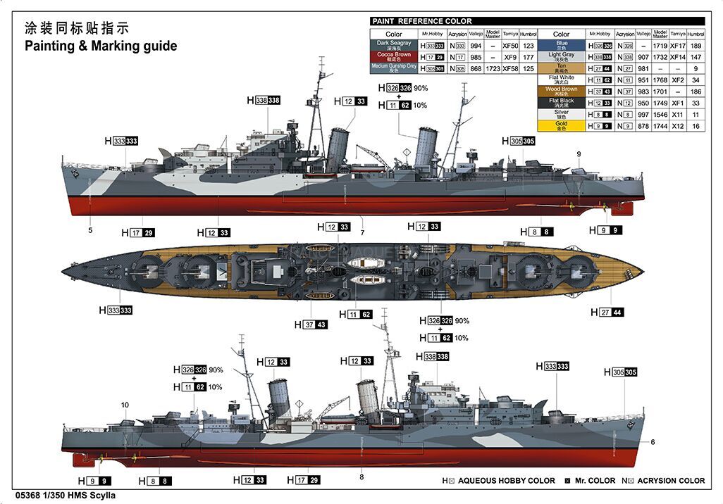 Le HMS Scylla fait partie des croiseurs légers britanniques de la classe Dido, construits entre 1939 et 1942 pour répondre aux besoins de défense anti-aérienne de la Royal Navy. Engagé sur plusieurs théâtres d’opérations majeurs, il a participé à des missions en Arctique, à l’opération Torch, ainsi qu’aux actions en Méditerranée et au soutien du débarquement en Normandie.