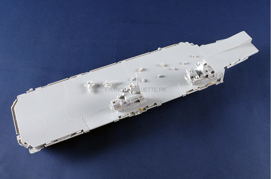 La maquette HMS Queen Elizabeth Aircraft Carrier de Trumpeter à l’échelle 1/700 permet de recréer avec précision l’un des porte-avions les plus modernes de la Royal Navy. Ce kit propose une coque monobloc finement moulée, garantissant une excellente rigidité et un alignement parfait dès le montage. Le pont d’envol, doté de ses marquages caractéristiques, ainsi que le pont de hangar détaillé, offrent une base réaliste pour représenter les opérations aéronavales contemporaines.
