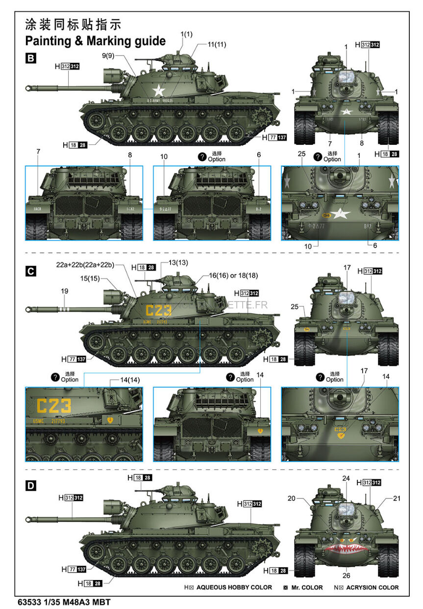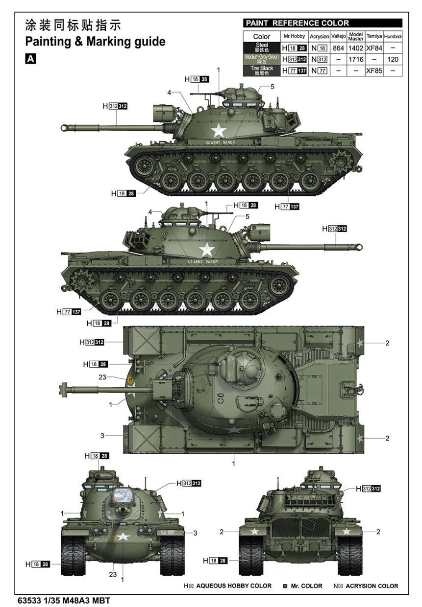 Ce kit comprend également des pièces photodécoupées et des maillons de chaîne individuels, ce qui ajoute un niveau supplémentaire de détail et de réalisme à la maquette finale. Les passionnés de modélisme pourront ainsi créer une réplique fidèle et authentique du M48 A3 CCP, avec tous les détails caractéristiques de ce char emblématique.