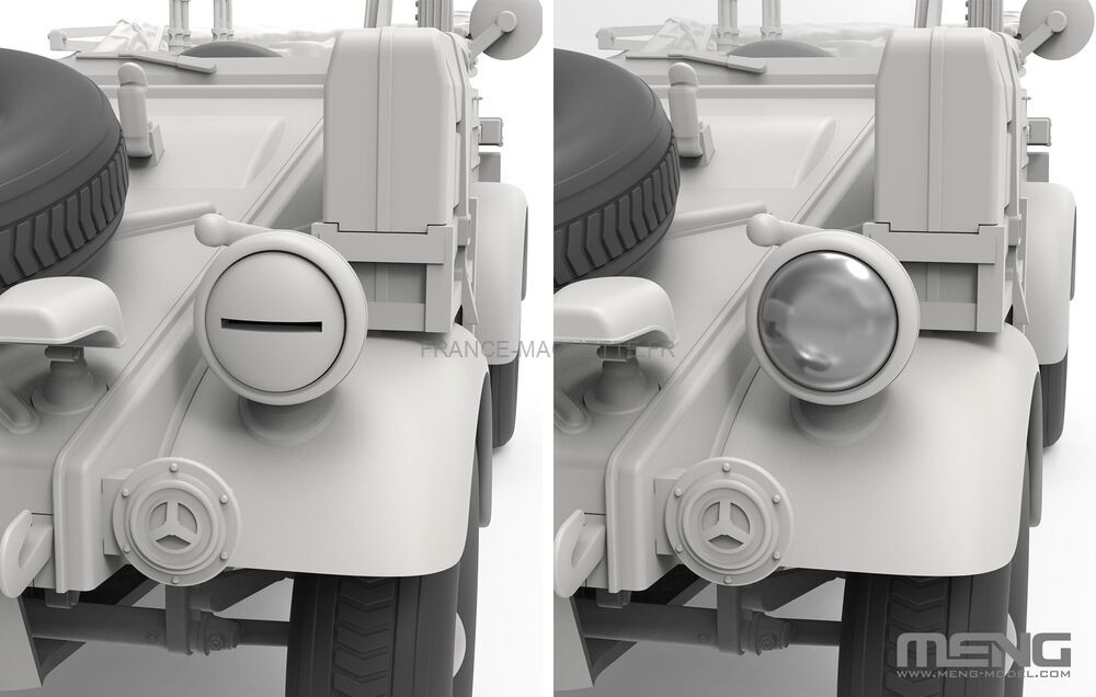 La maquette Meng VS-015 Pkw.K1 Type 82 Kubelwagen Nord Africa à l’échelle 1/35 reproduit avec précision l’un des véhicules emblématiques de la Wehrmacht. Conçu pour être léger, simple et robuste, le Kubelwagen a prouvé son efficacité sur les terrains les plus difficiles, du sable brûlant d’Afrique du Nord aux routes glacées de l’Union soviétique. Son moteur arrière refroidi par air le rendait fiable même dans des conditions extrêmes. Certaines unités l’équipaient même d’un dispositif permettant de démarrer les moteurs de chars lourds comme les « Tigre » et « Panther » lors des hivers rigoureux.