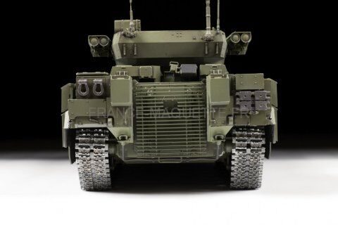Doté d’un blindage avancé et du système de protection active Afganit, le T-15 est conçu pour opérer en première ligne aux côtés des chars T-14 Armata. Son armement moderne, incluant un système antichar Kornet et un canon capable d’engager des cibles aériennes, en fait un véhicule polyvalent et redoutable. Cette maquette reproduit fidèlement les lignes massives et futuristes de ce blindé, offrant un modèle original pour les passionnés d’équipements militaires contemporains.