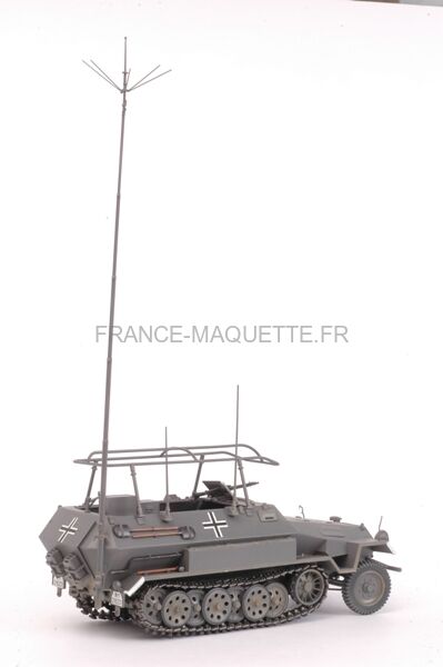 Équipé historiquement de différentes combinaisons de radios et d’antennes (mât relevable, cadre ou tige), le Sd.Kfz.251/3 offrait aux commandants une mobilité optimale, un blindage efficace contre les tirs d’armes légères et un armement défensif par mitrailleuses. Ce kit Zvezda propose toutes les pièces nécessaires pour recréer fidèlement cet engin emblématique.